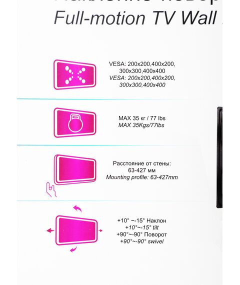 | Подходит для телевизоров c диагональю | 32", 37", 39", 40", 42", 46", 48", 50", 52", 55" |
