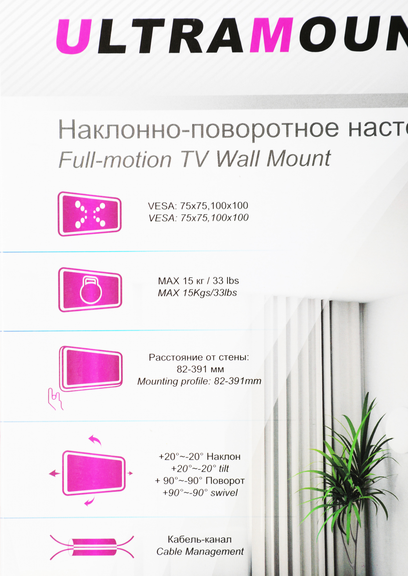Кронштейн для телевизора Ultramounts UM895 черный 13"-27" макс.15кг настенный поворотно-выдвижной и наклонный