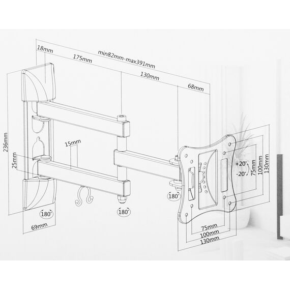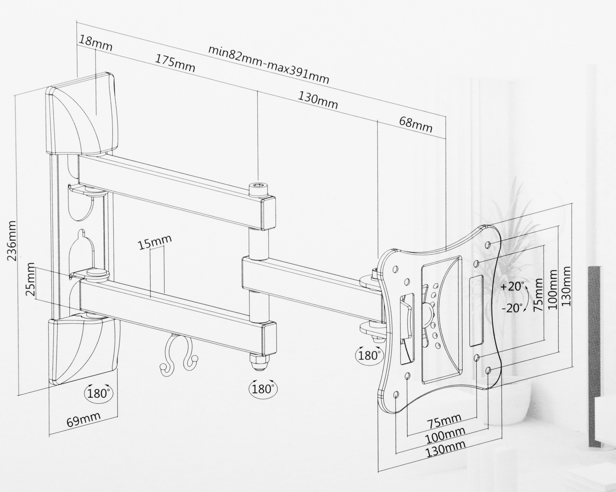| Расстояние от стены / потолка (макс) | 39.1 см |