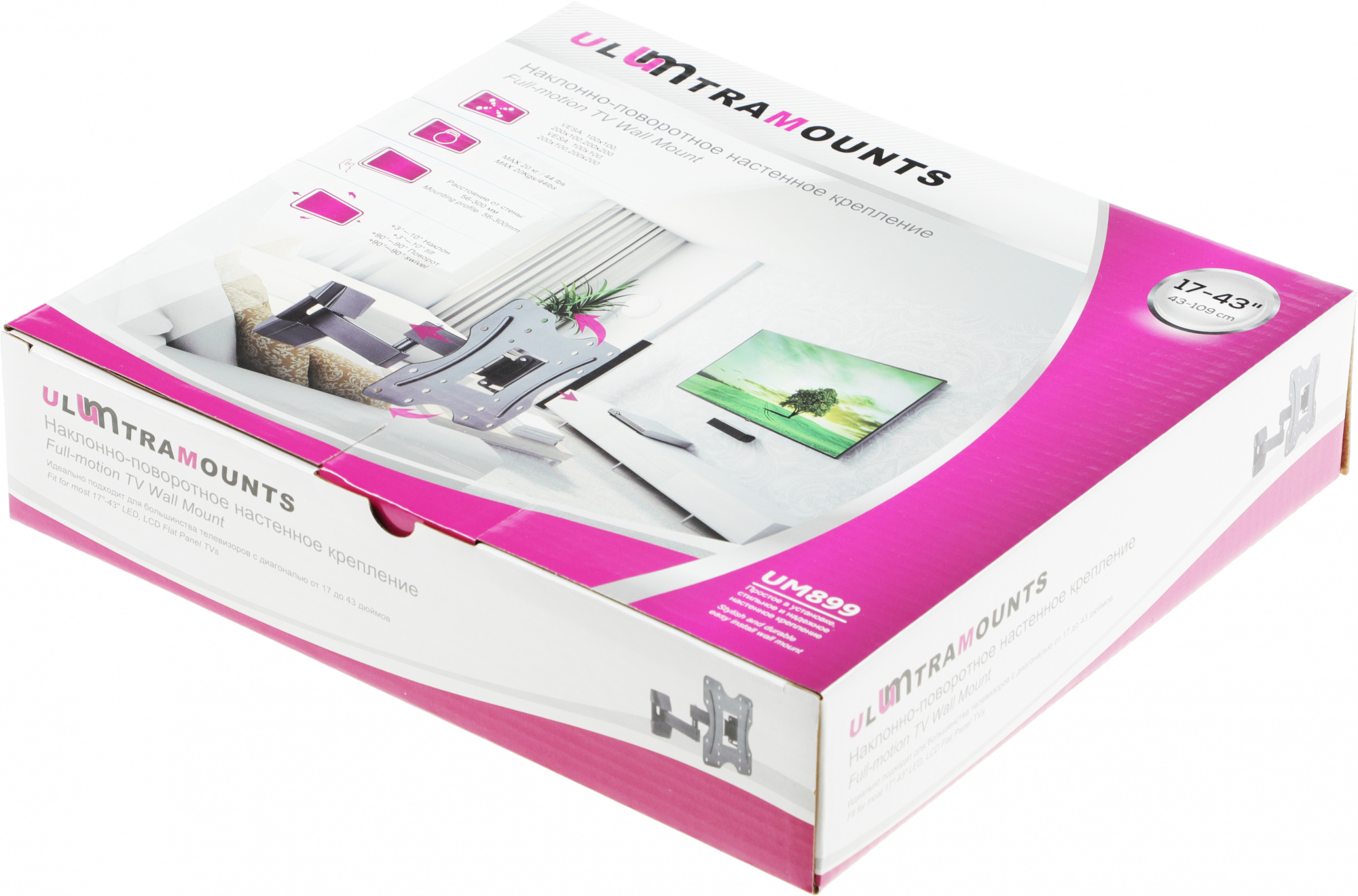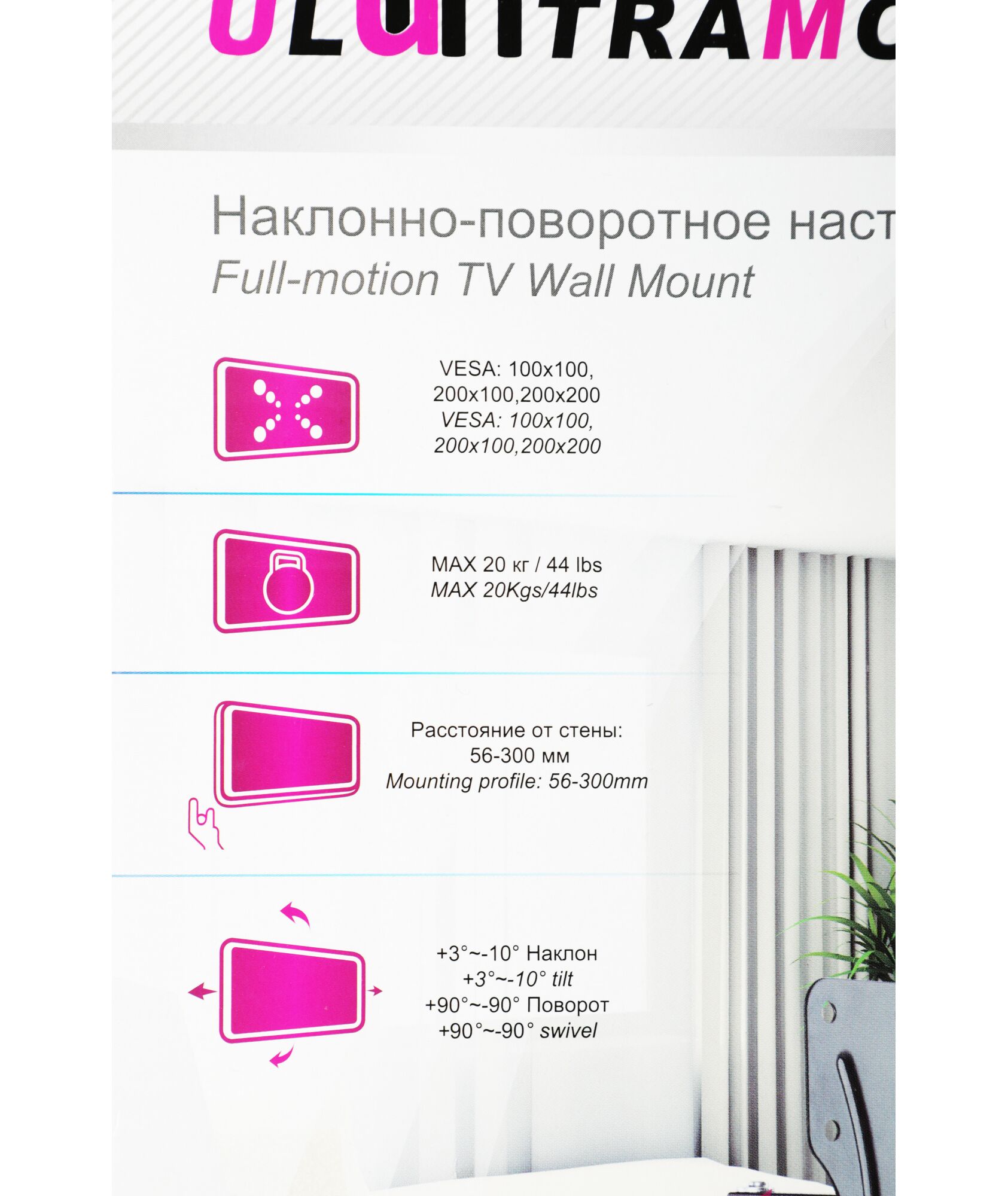 Кронштейн для телевизора Ultramounts UM899 черный 23"-43" макс.20кг настенный поворотно-выдвижной и наклонный