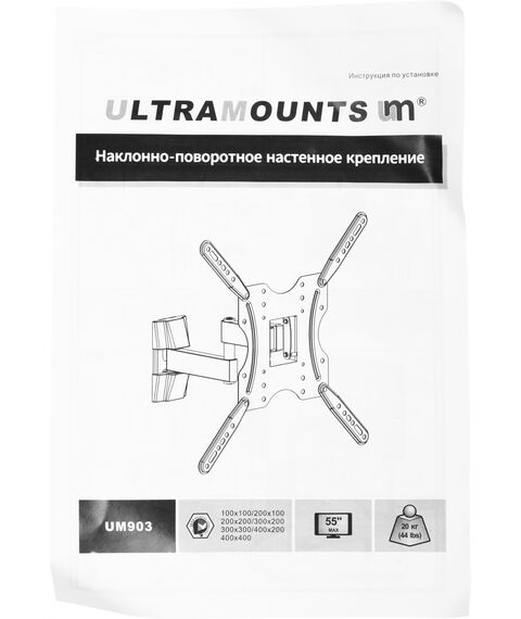 Кронштейн для телевизора Ultramounts UM903 черный 32"-55" макс.20кг настенный поворотно-выдвижной и наклонный