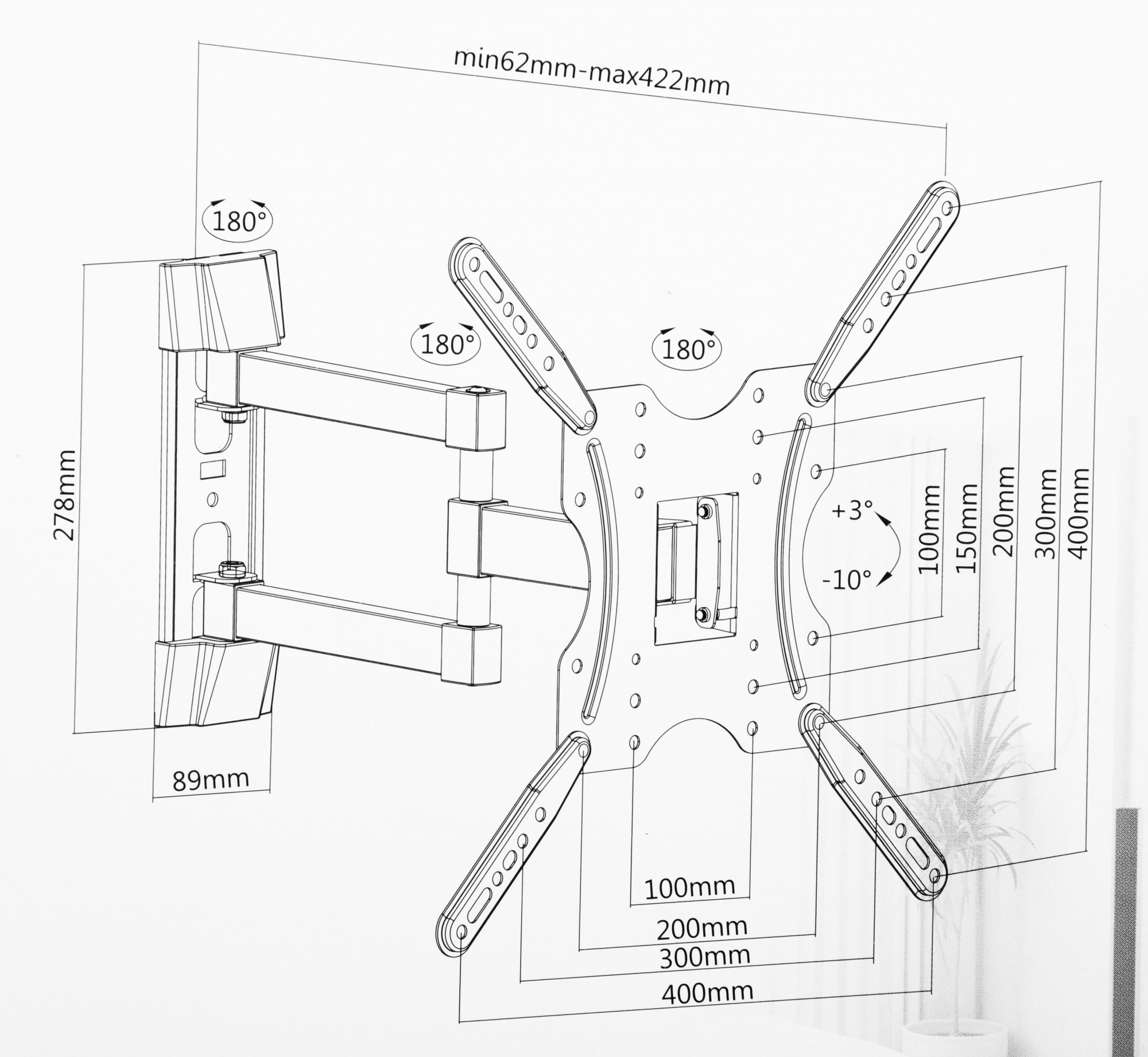 | Расстояние от стены / потолка (мин) | 6.2 см |