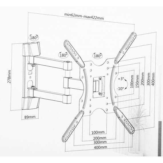 | Подходит для телевизоров c диагональю | 32", 37", 39", 40", 42", 46", 48", 50", 52", 55" |