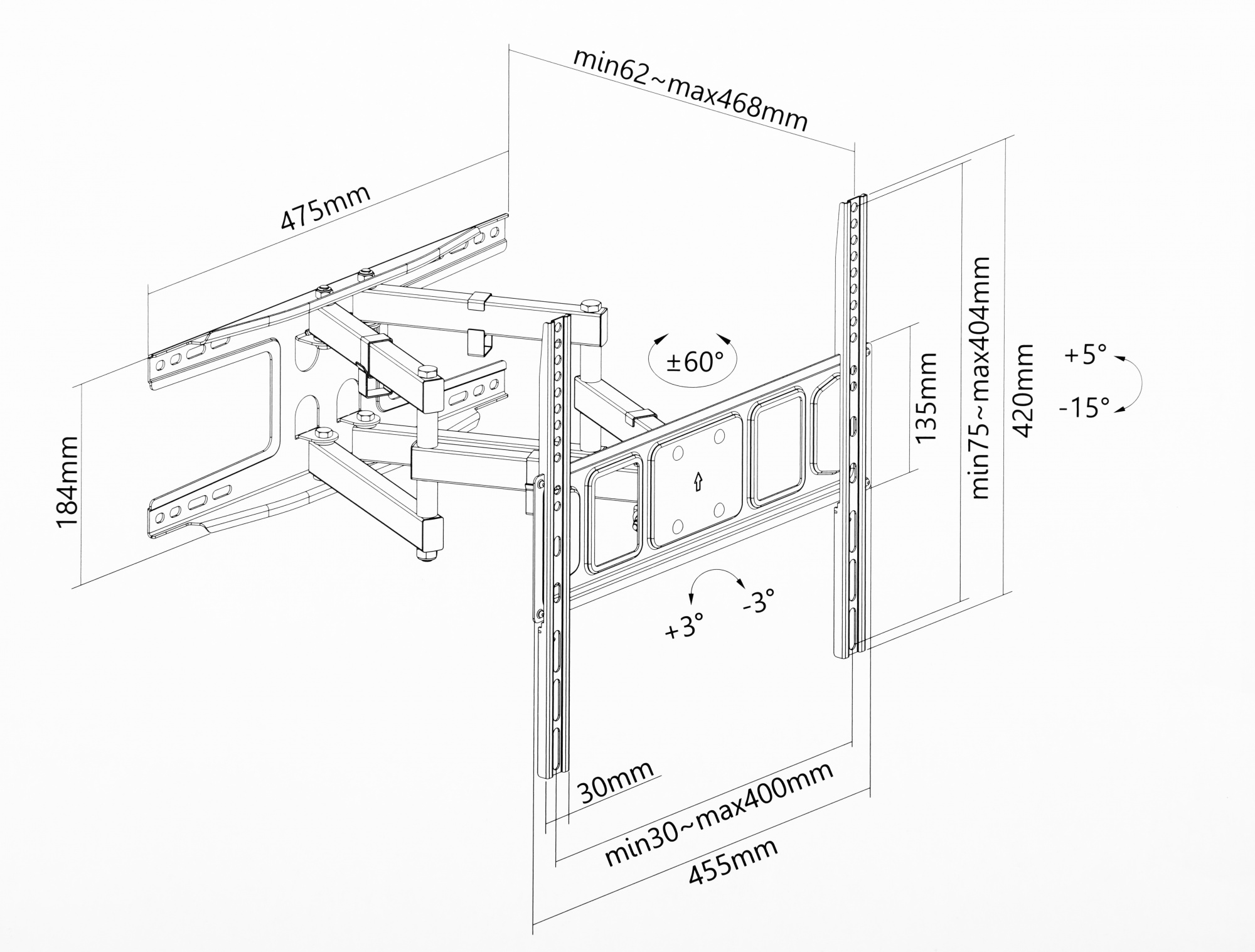 | Расстояние от стены / потолка (макс) | 46.8 см |