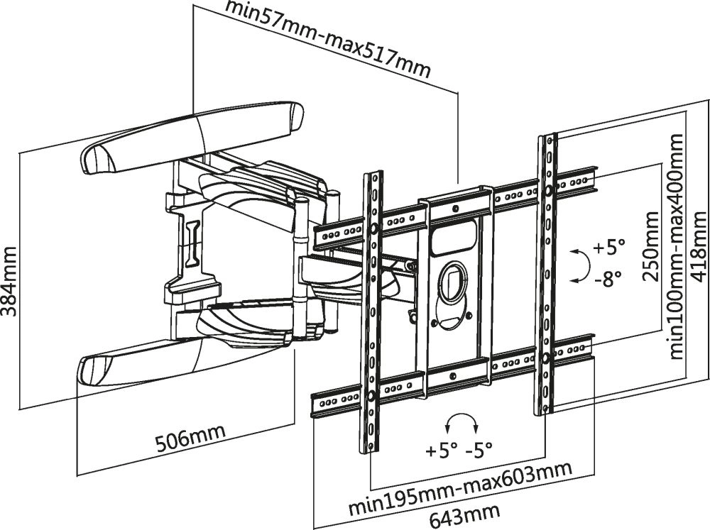 | Подходит для телевизоров c диагональю | 37", 39", 40", 42", 46", 48", 50", 52", 55", 60", 65", 70", 75" |