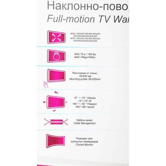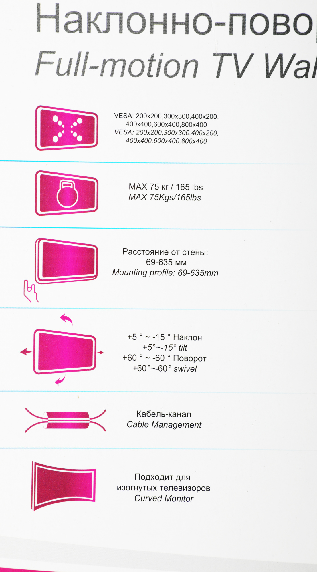 | Подходит для телевизоров c диагональю | 37", 39", 40", 42", 46", 48", 50", 52", 55", 60", 65", 70", 75", 85" |