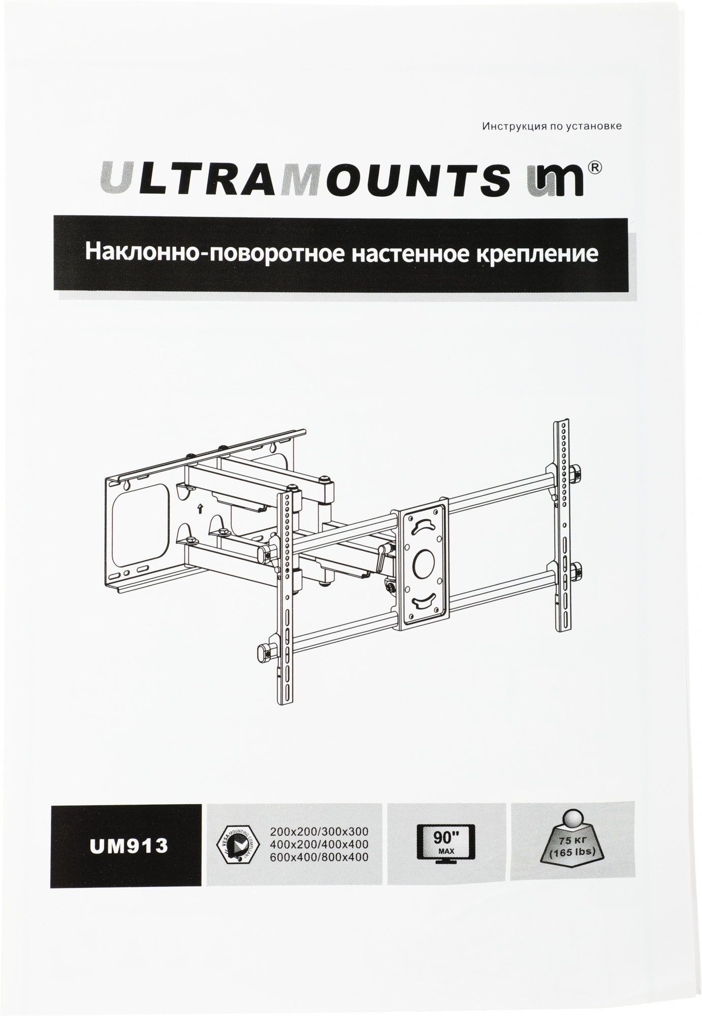 Кронштейн для телевизора Ultramounts UM913 черный 37-90 макс.75кг настенный поворотно-выдвижной и наклонный