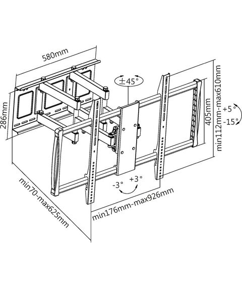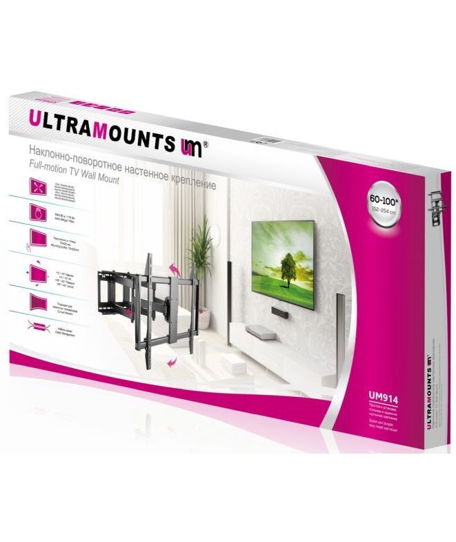 Кронштейн для телевизора Ultramounts UM914 черный 60-100 макс.80кг настенный поворотно-выдвижной и наклонный