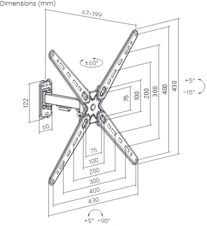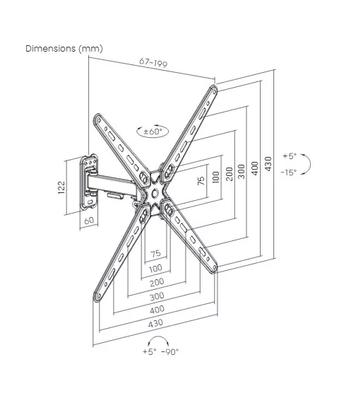 | Поддержка крепления VESA | 400x400, 75x75 |