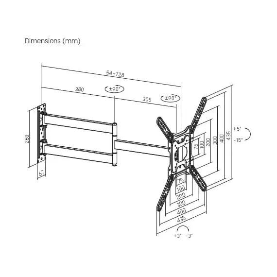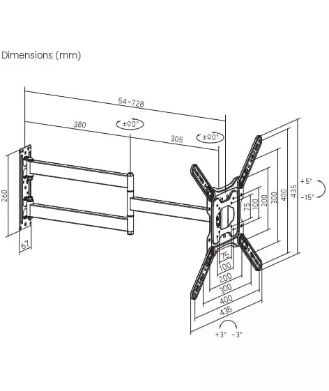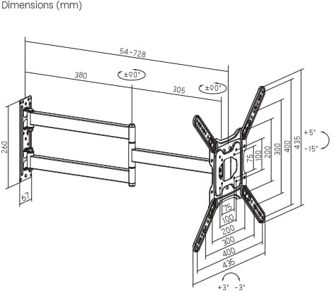 | Подходит для телевизоров c диагональю | 23", 24", 26", 28", 32", 37", 39", 40", 42", 43", 46", 48", 50", 52", 55", 60", 65" |
