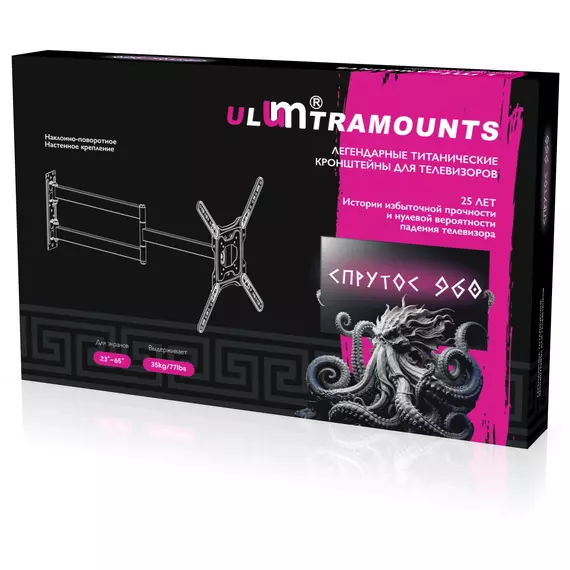 Кронштейн для телевизора Ultramounts UM960 черный 23"-65" макс.35кг настенный поворот и наклон