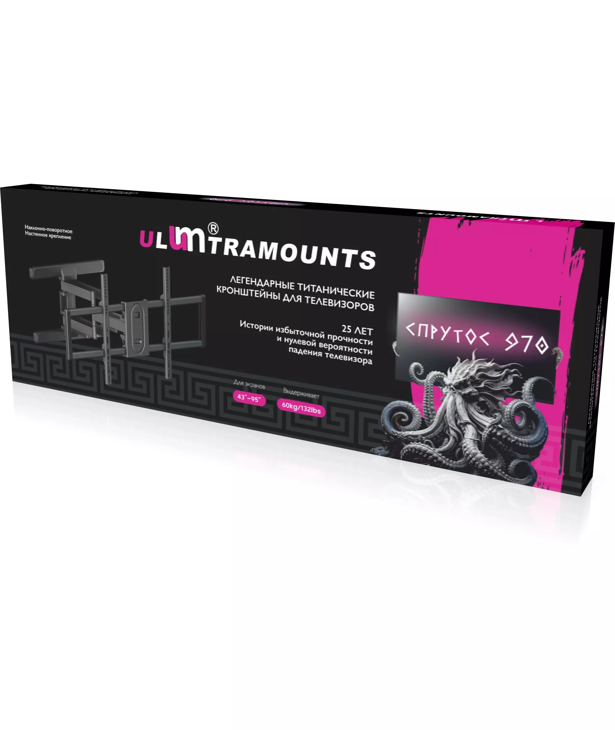 Кронштейн для телевизора Ultramounts UM970 черный 95"-120" макс.60кг настенный поворот и наклон