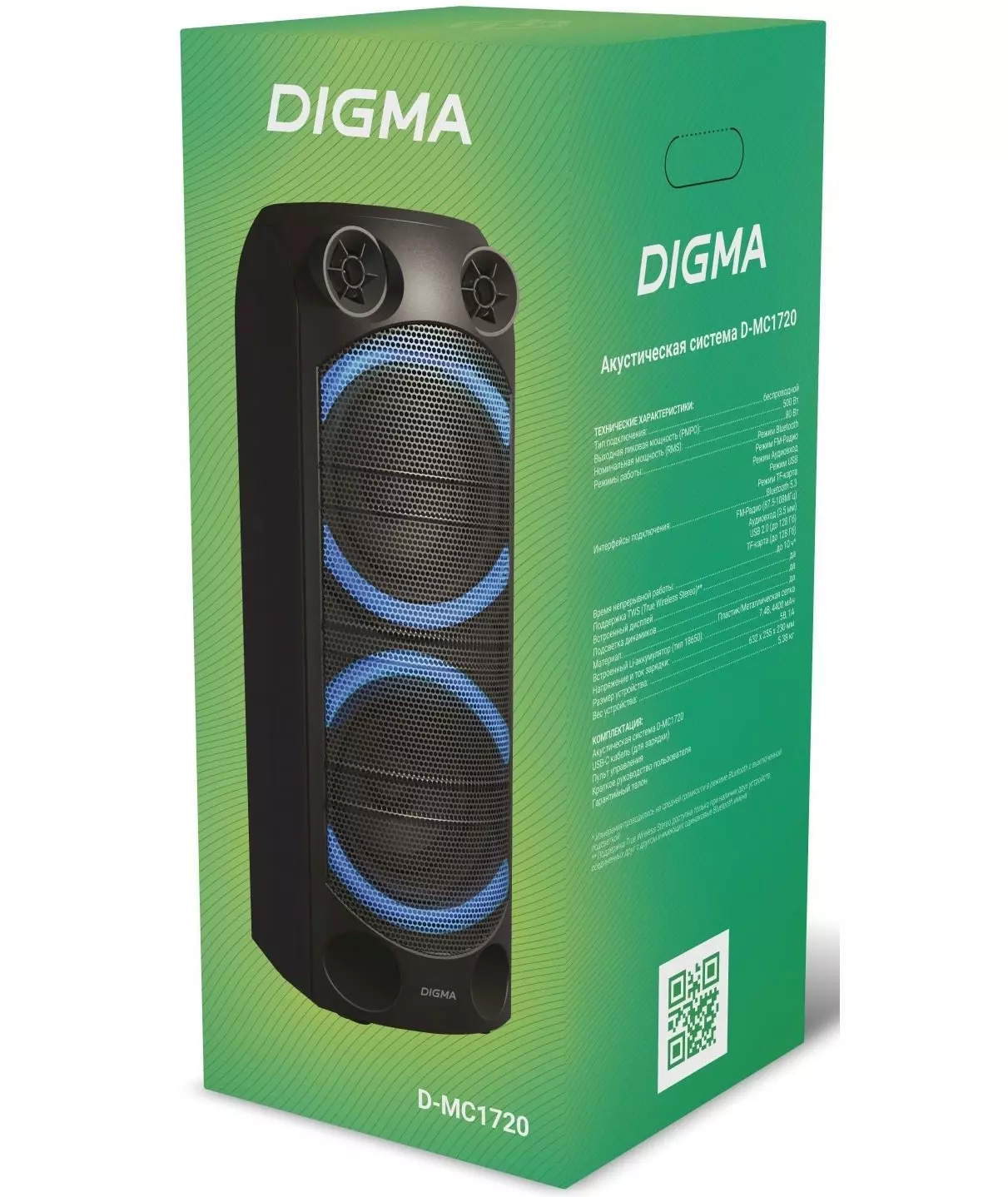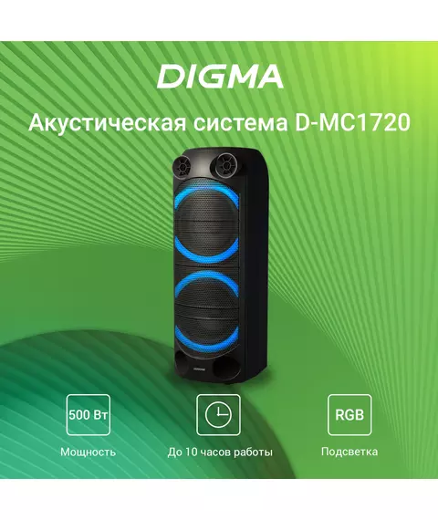 Минисистема Digma D-MC1720 80Вт, FM, USB, BT, micro SD, черный [MC1720B]