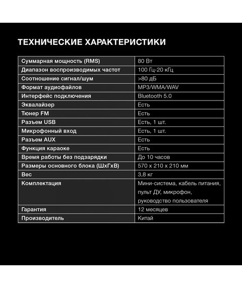 Минисистема Hyundai H-MC180 80Вт FM USB BT SD/MMC