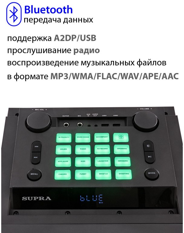 - Регулировка низких и высоких частот: есть + эхо-эффекта канала микрофона