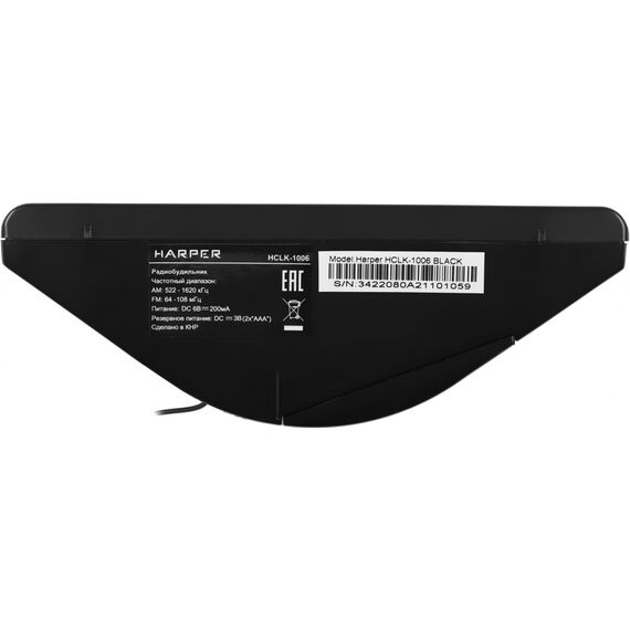 Радиобудильник HARPER HCLK-1006 черный LED подсв:зеленая часы:цифровые AM/FM