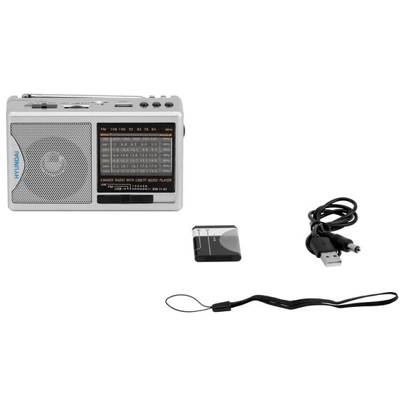Радиоприемник портативный Hyundai H-PSR160 серебристый USB microSD [H-PSR160]