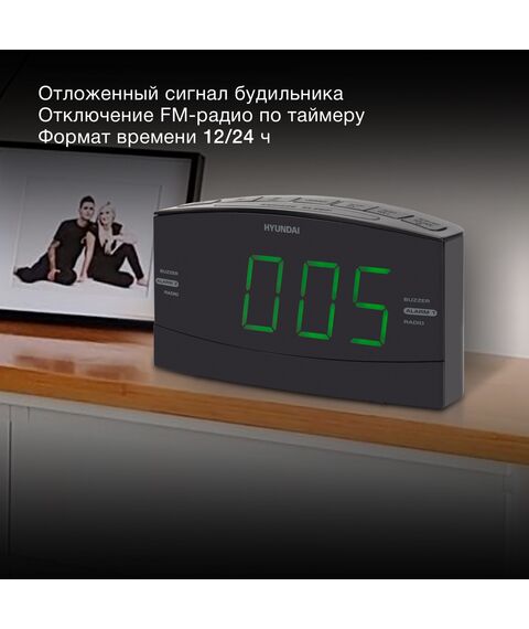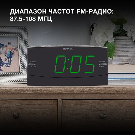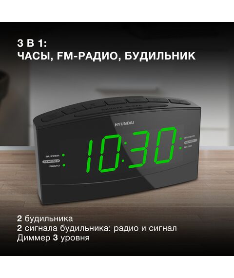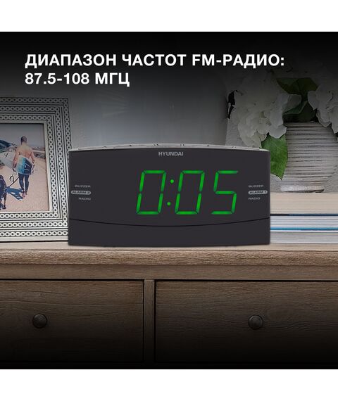 Радиобудильник Hyundai H-RCL238 черный LCD подсв:зеленая часы:цифровые FM