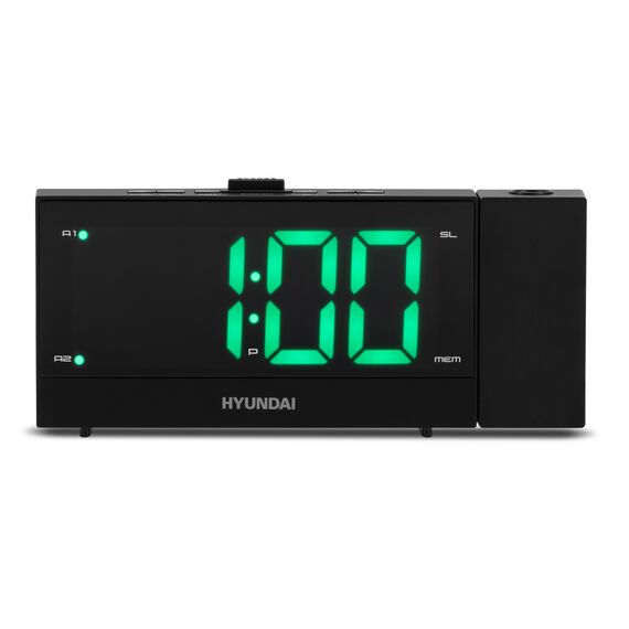 Радиобудильник Hyundai H-RCL243 черный LCD проек.изоб. подсв:зеленая часы:цифровые FM
