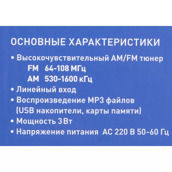 | Особенности | Диапазон частот FM Радио 87,5-108 MГц. Диапазон частот AM Радио 530-1600 кГц. |