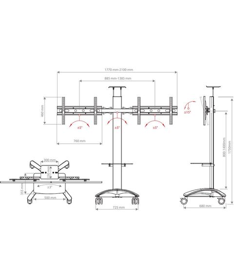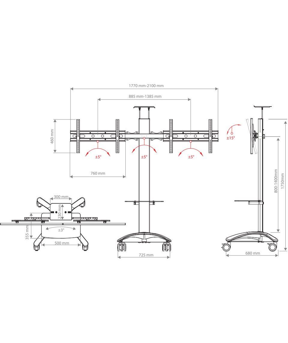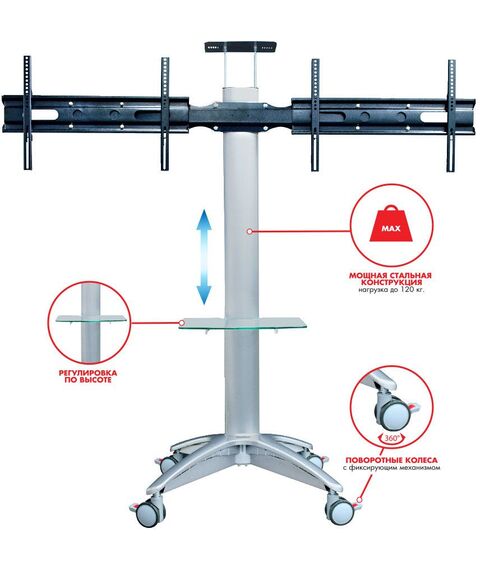 Подставка для телевизора ARM Media PT-STAND-15 серебристый 26-55 макс.120кг напольный наклон [10242]