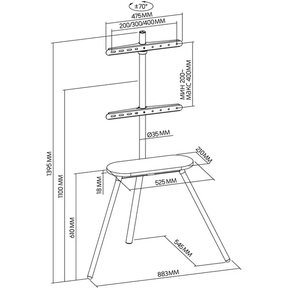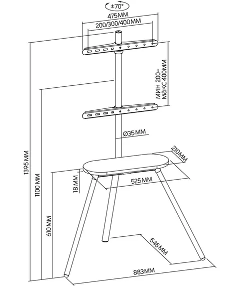 | Подходит для телевизоров c диагональю | 46", 48", 50", 52", 55", 60", 65" |