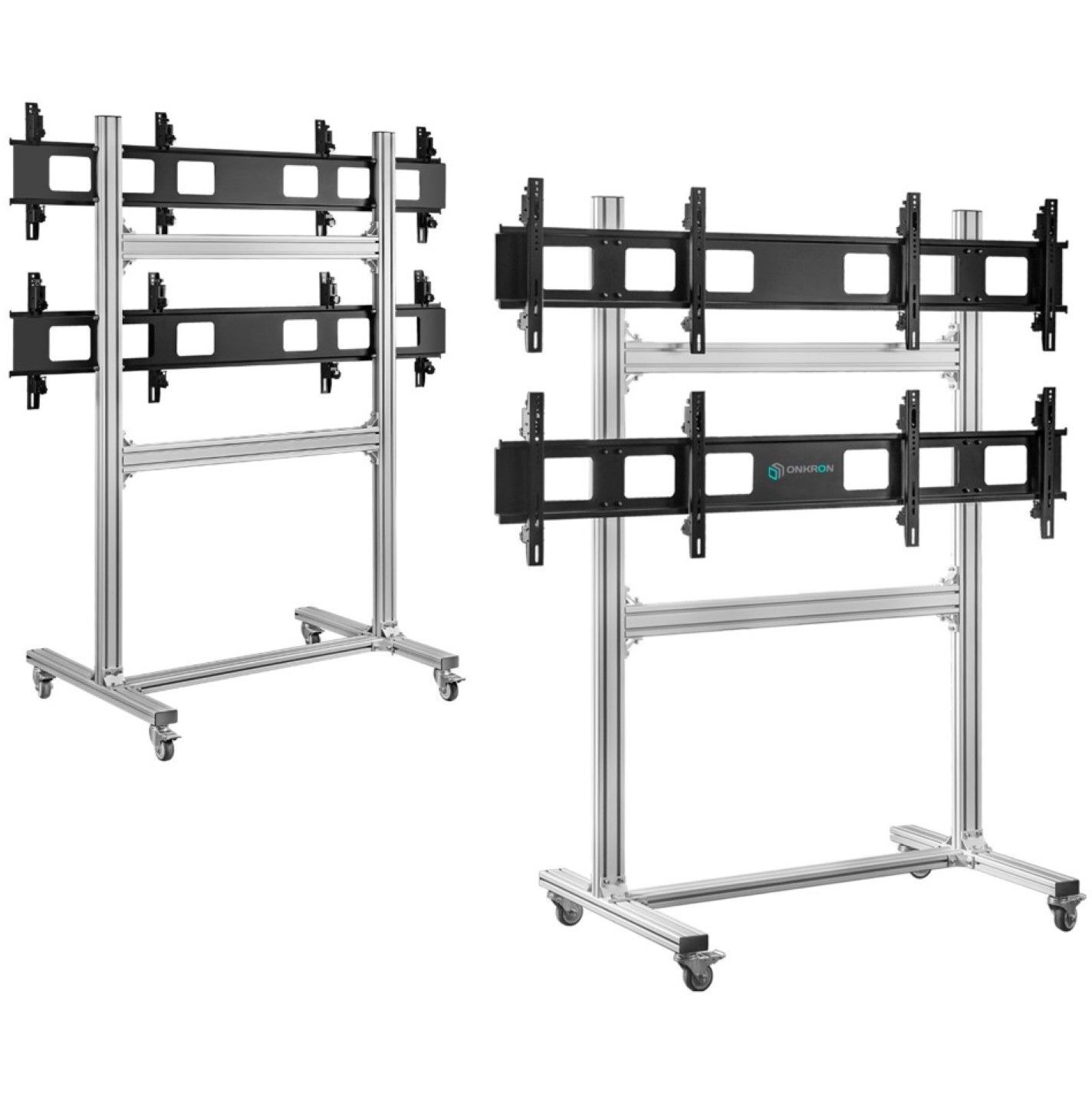 Напольный мобильный стенд для видеостен ONKRON FSPRO2L-22 предназначен для размещения четырех digital-панелей диагональю от 40 до 55 дюймов. Максимальный выдерживаемый вес каждого из четырех экранов составляет 50 кг.