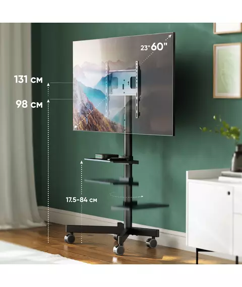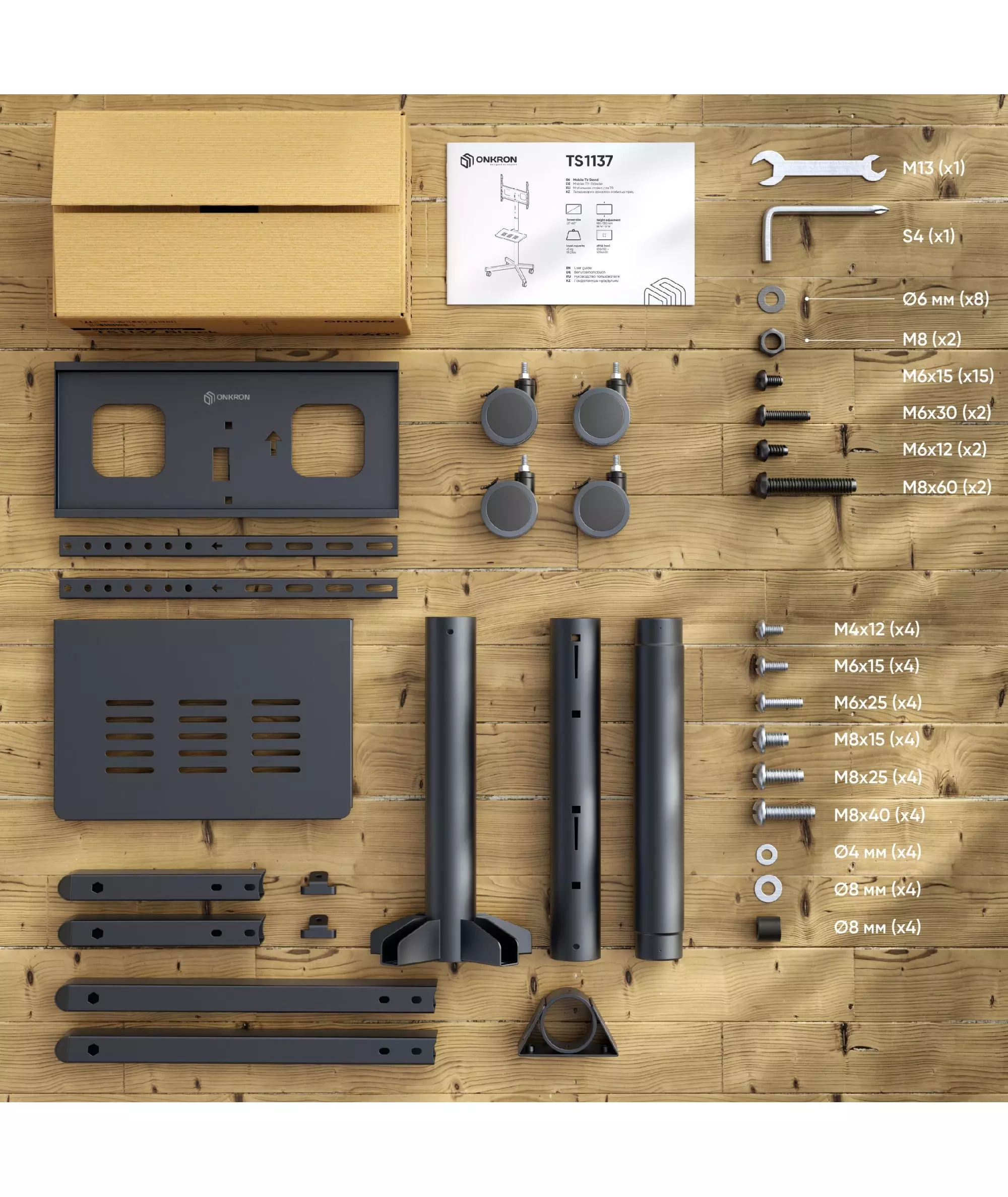 Стойка для телевизора ONKRON TS1137 черный 23"-60" макс.45кг напольный мобильный
