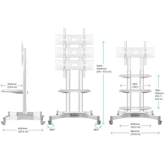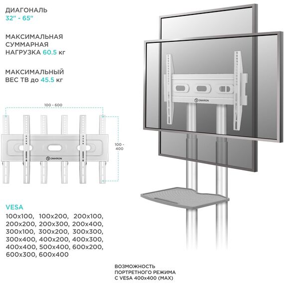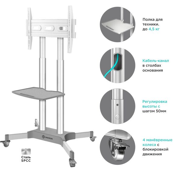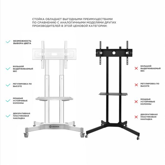 Стойка для телевизора ONKRON TS1351 белый 32-65 макс.50кг напольный мобильный