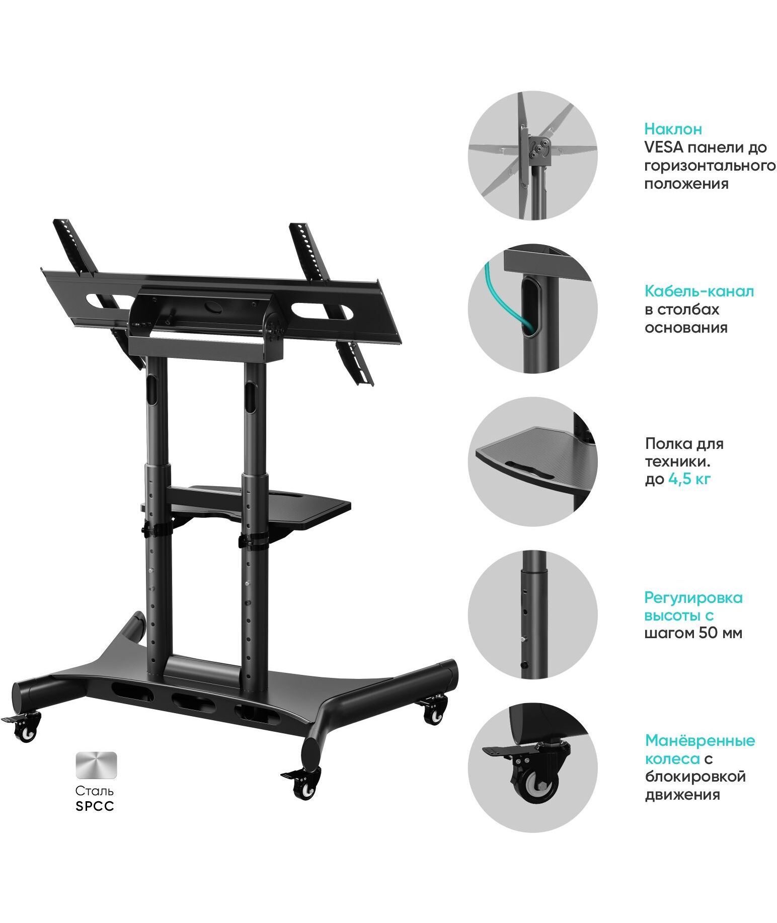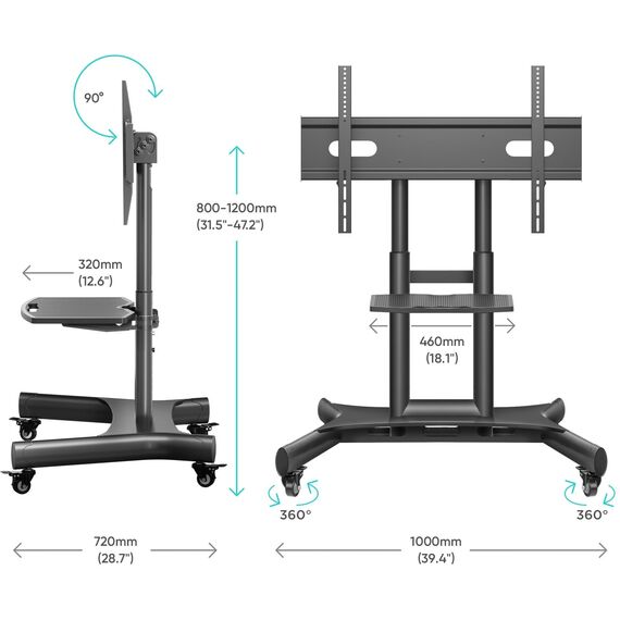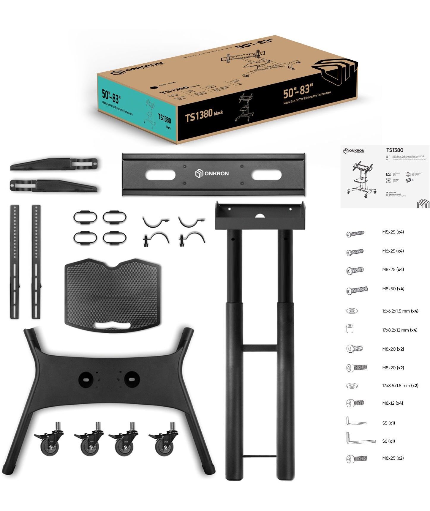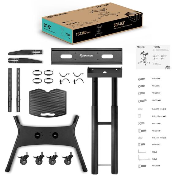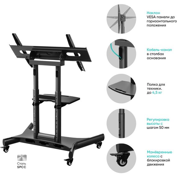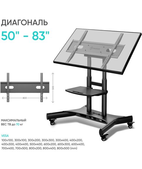Стойка для телевизора ONKRON TS1380 черный 50-83 макс.70кг напольная мобильная