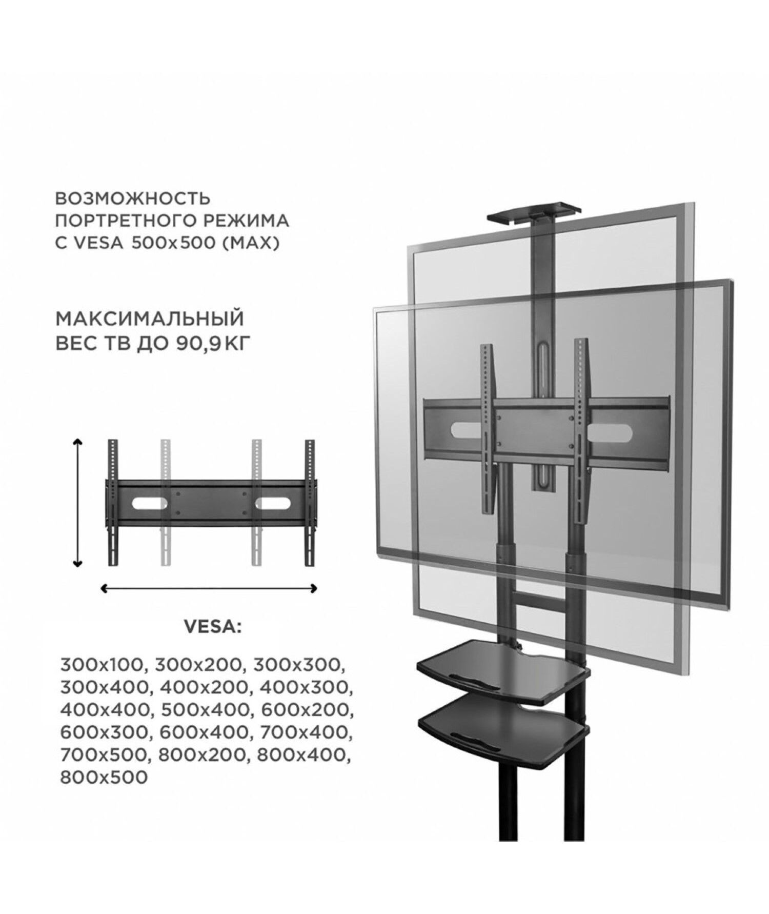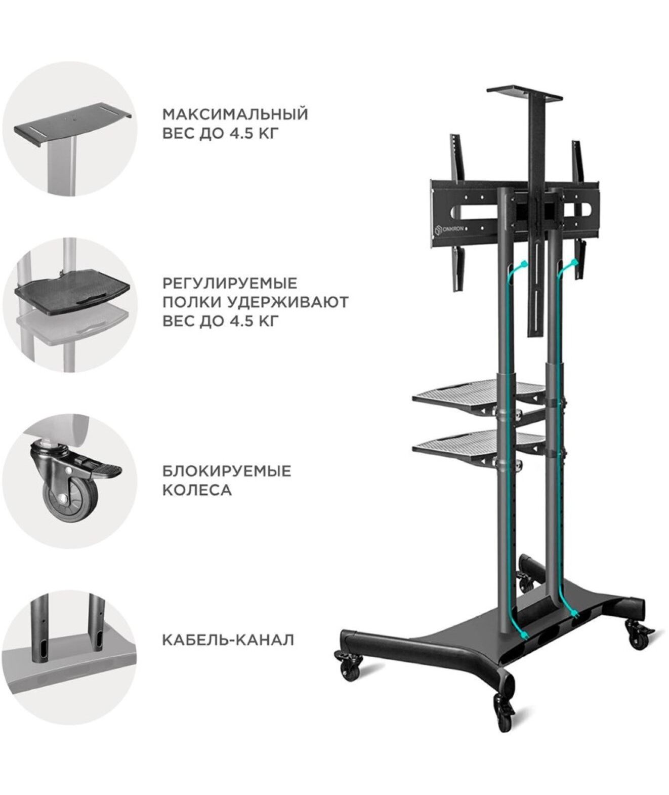 Подставка для телевизора ONKRON TS1881 черный 50"-86" макс.105.9кг напольный мобильный