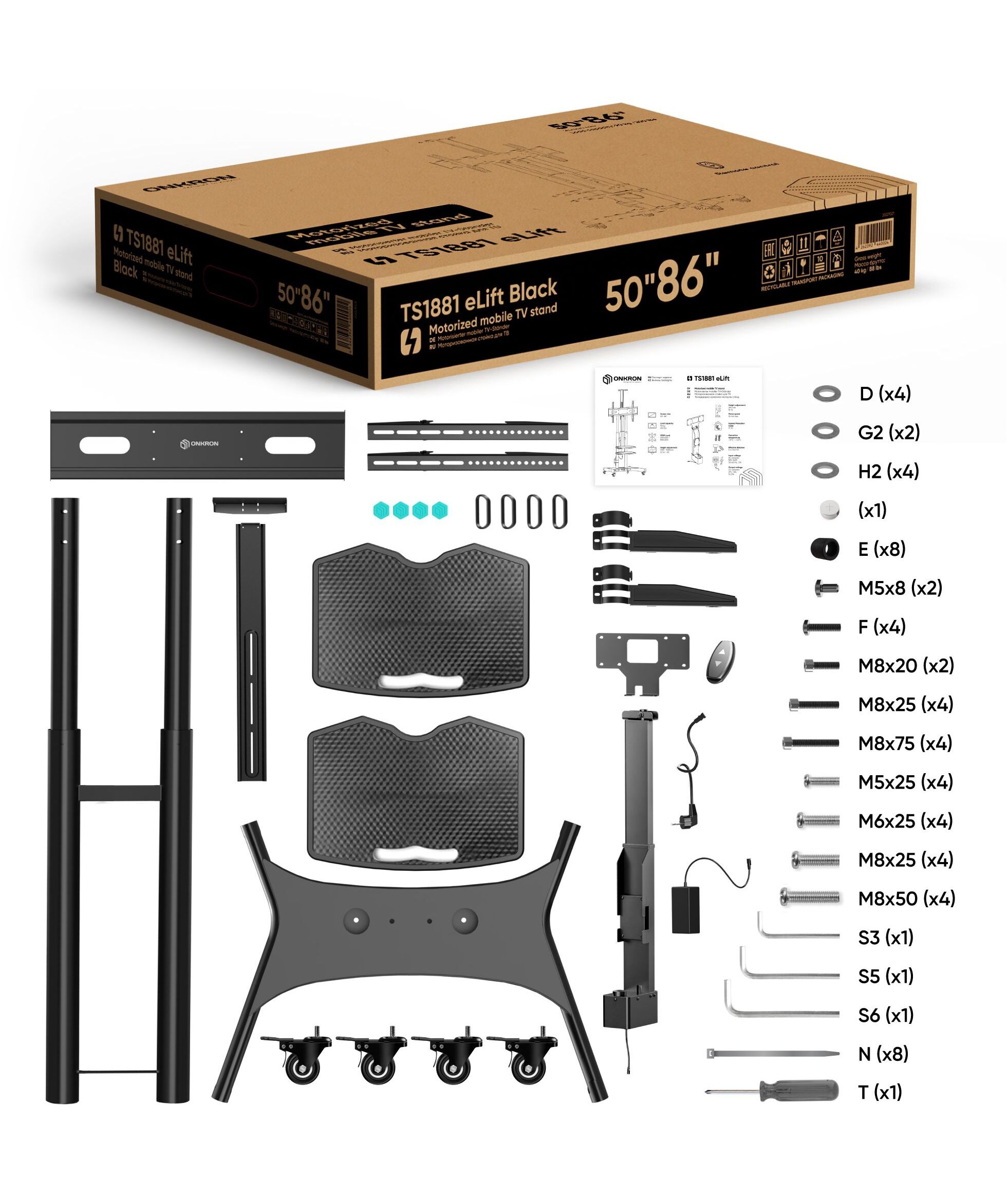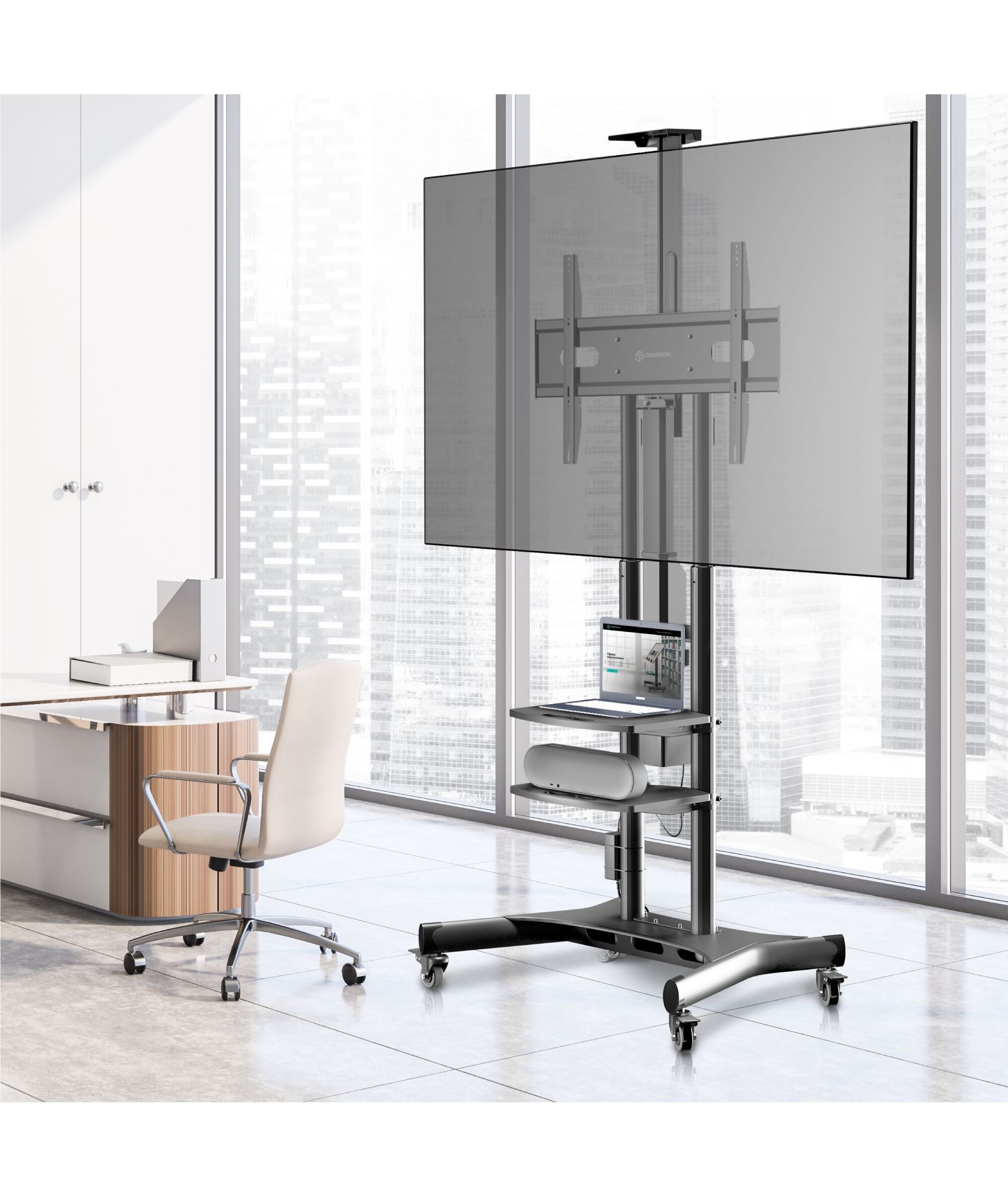 Подставка для телевизора ONKRON TS1881 ELIFT черный 50-86 макс.90кг напольный наклон