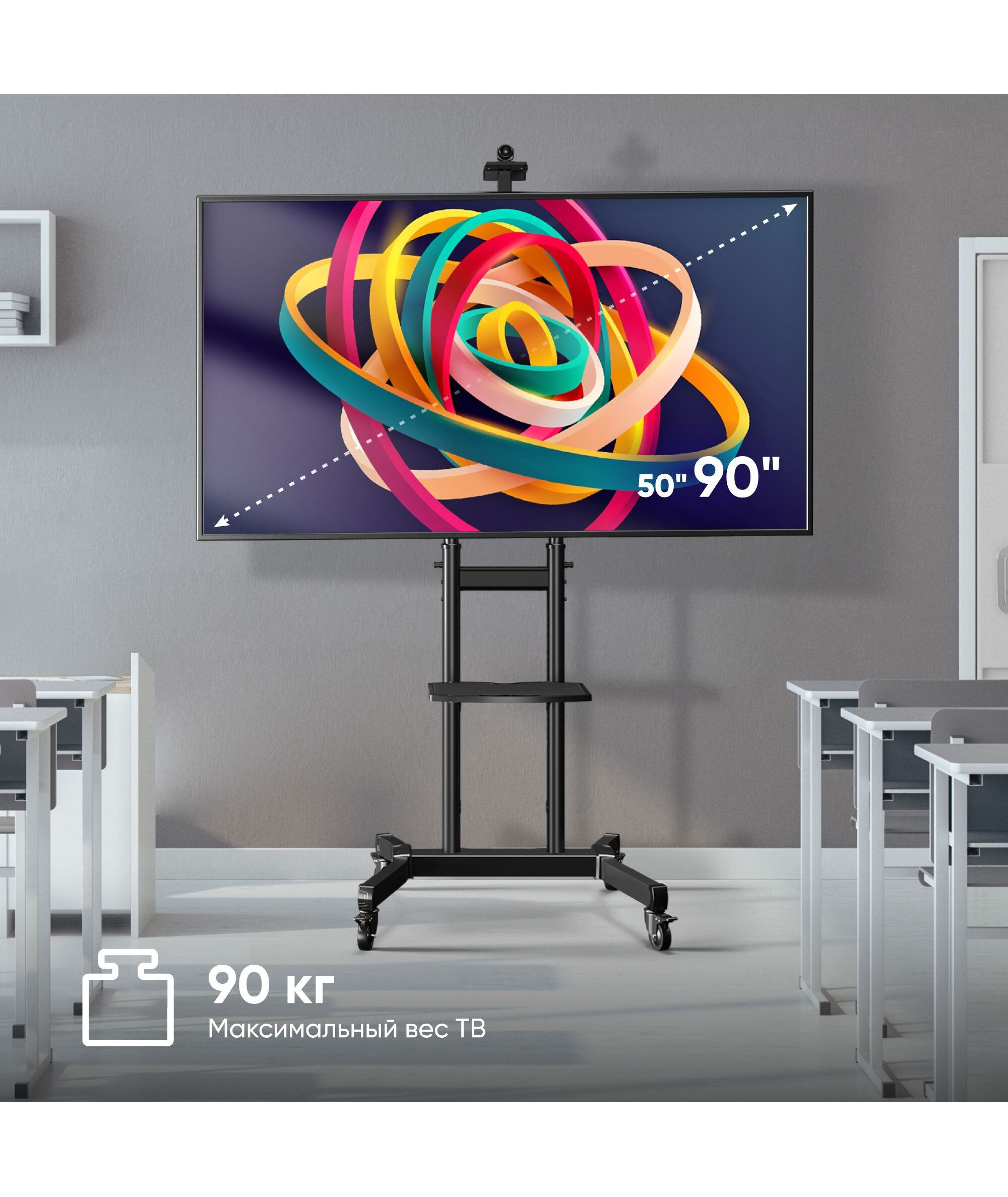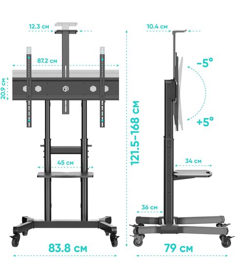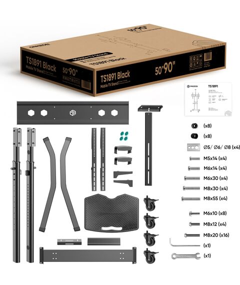 Стойка для телевизора ONKRON TS1891 черный 50"-90" макс.100кг напольный мобильный