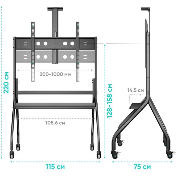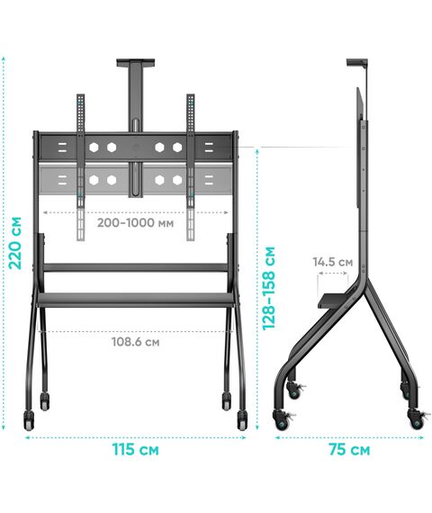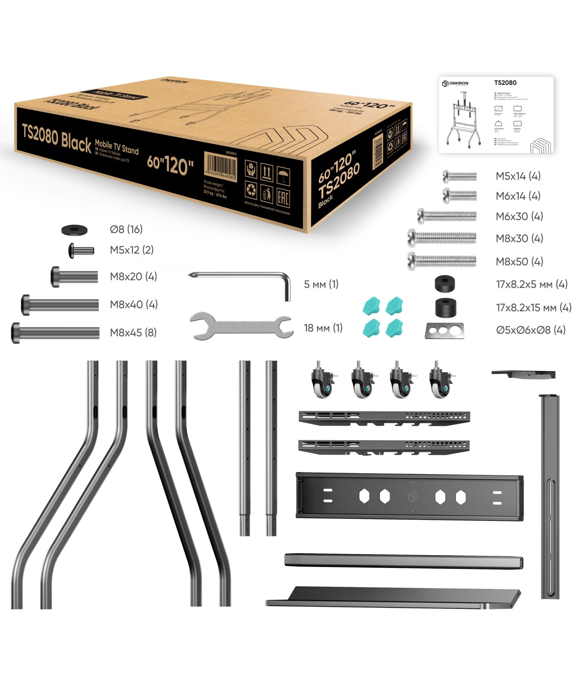 Стойка для телевизора ONKRON TS2080 черный 60-120 макс.150кг напольная мобильная