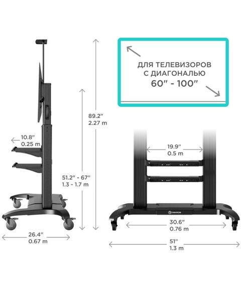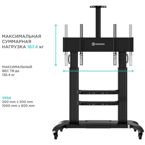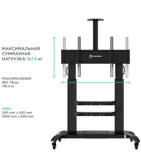 Подставка для телевизора ONKRON TS2811 черный 60"-100" макс.147.8кг напольный мобильный