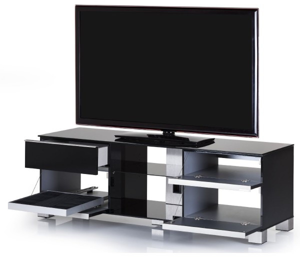 Стильная тумба под телевизор из закаленного стекла с полированными краями. Предназначена для больших телевизоров весом до 80 кг. В задней ножке расположен кабель-канал для скрытия всех кабелей и проводов. Оснащена скрытой роликовой системой для легкого передвижения ТВ подставки даже вместе с телефизором.