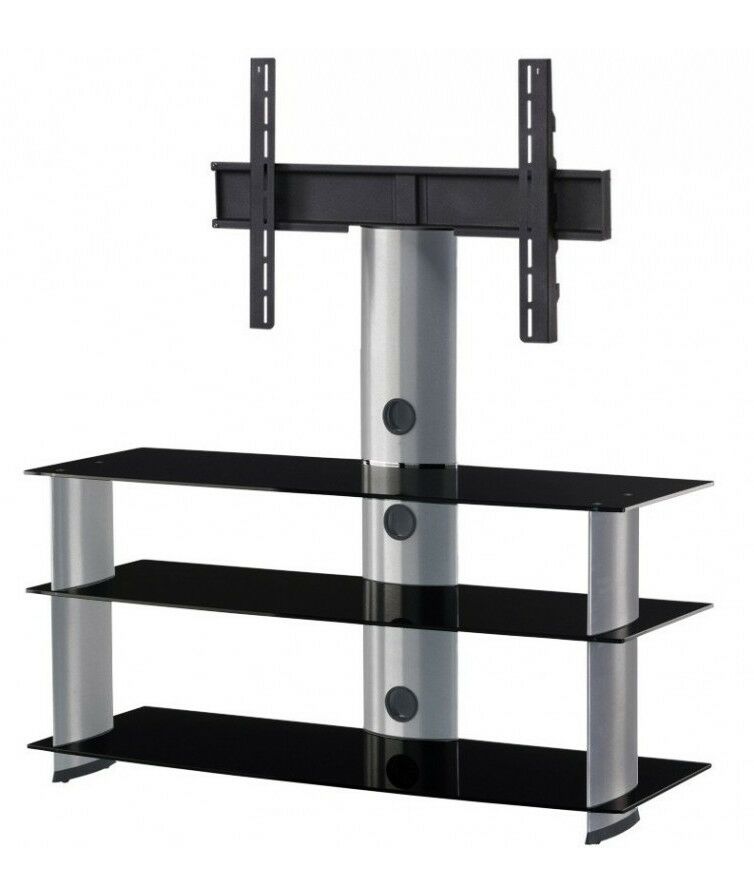 Надежная стойка под большие телевизоры с универсальным поворотным креплением из закаленного стекла с закругленными углами и полированной кромкой. Поворотное крепление подходит для всех видов плоских телевизоров (LCD, LED и плазма) и имеет возможность регулировки высоты. В задней ножке расположен кабель-канал для маскировки проводов и кабелей. Оснащена скрытой роликовой системой для плавного перемещения ТВ стойки вместе с телевизором и другой аппаратурой. Стойка предназначена для телевизоров с диагональю 42-65 дюймов (весом до 50 кг). Крепление поддерживает форматы 20x20, 30x30, 40x40 и 60х40