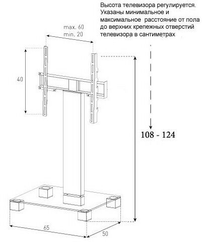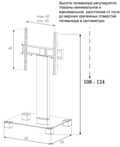 Надежная стойка под телевизоры с универсальным поворотным креплением из закаленного стекла с закругленными углами и полированной кромкой. Поворотное крепление подходит для всех видов плоских телевизоров (LCD, LED и плазма) и имеет возможность регулировки высоты. В задней ножке расположен кабель-канал для маскировки проводов и кабелей. Стойка предназначена для телевизоров с диагональю 37-65 дюймов (весом до 50 кг). Крепление поддерживает форматы 20x20, 30x30, 40x40 и 60х40. Возможно оснащение увеличенным креплением (80x45)