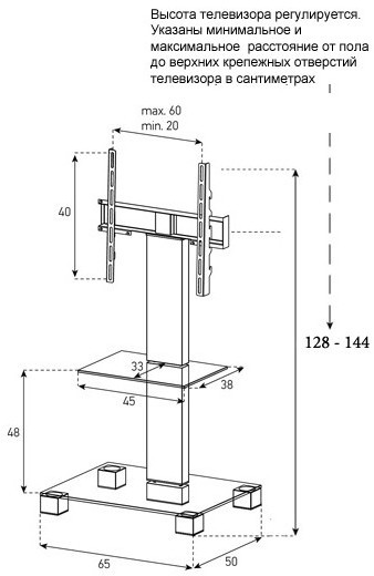 - Диагональ ТВ: 37 — 65 дюйм