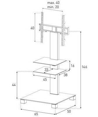 Надежная стойка под телевизоры с универсальным поворотным креплением из закаленного стекла с закругленными углами и полированной кромкой. Поворотное крепление подходит для всех видов плоских телевизоров (LCD, LED и плазма) и имеет возможность регулировки высоты. В задней ножке расположен кабель-канал для маскировки проводов и кабелей. Стойка предназначена для телевизоров с диагональю 37-65 дюймов (весом до 50 кг). Крепление поддерживает форматы 20x20, 30x30, 40x40 и 60х40. Возможно оснащение увеличенным креплением (80x45)