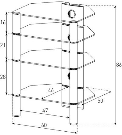 Надежная стойка под hi-fi компоненты из закаленного стекла с закругленными углами и полированной кромкой. В задней ножке расположен кабель-канал, который эффективно маскирует межкомпонентные провода и кабели