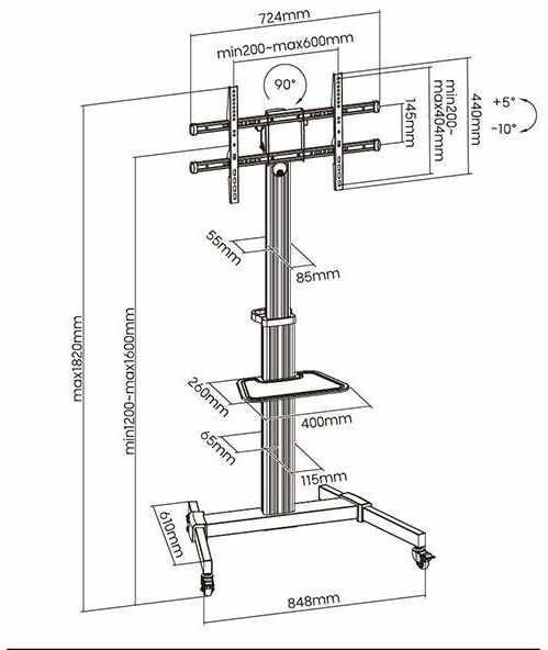 | Подходит для телевизоров c диагональю | 37", 39", 40", 42", 46", 48", 50", 52", 55", 60", 65", 70", 75", 85" |