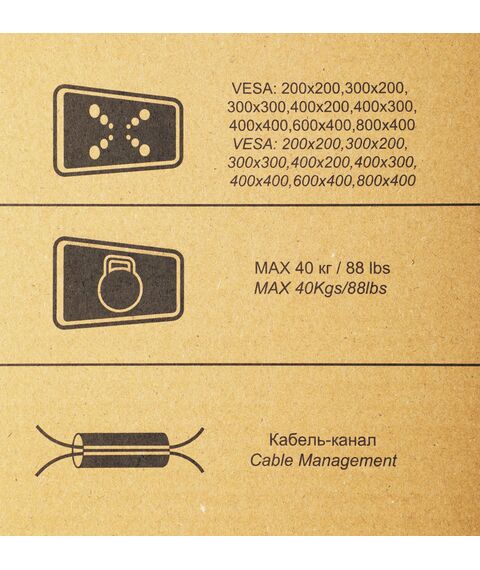 | Подходит для телевизоров c диагональю | 37", 39", 40", 42", 46", 48", 50", 52", 55", 60", 65", 70" |