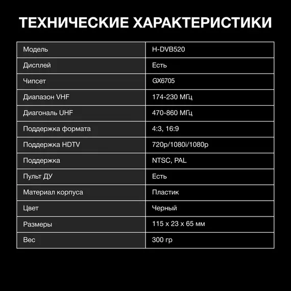 Ресивер DVB-T2 Hyundai H-DVB520 черный