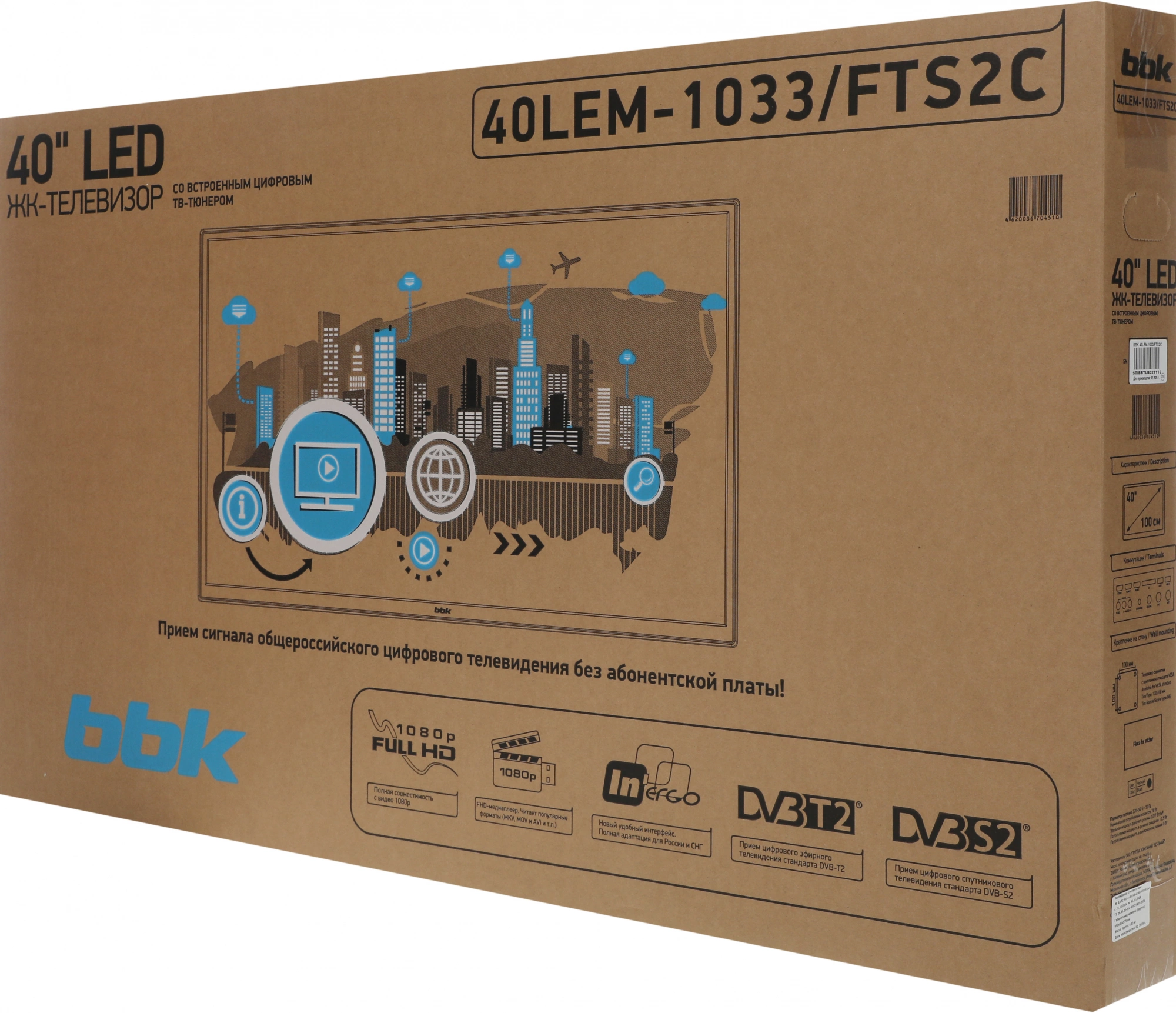 Телевизор BBK 40LEM-1033/FTS2C (B) LED 40" черный FULL HD 60Hz DVB-T2 DVB-C DVB-S2 USB (RUS)
