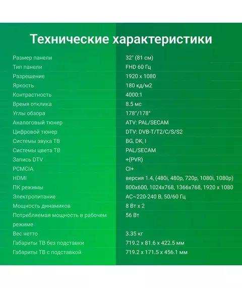 | Диагональ экрана (дюймы) | 32 " |