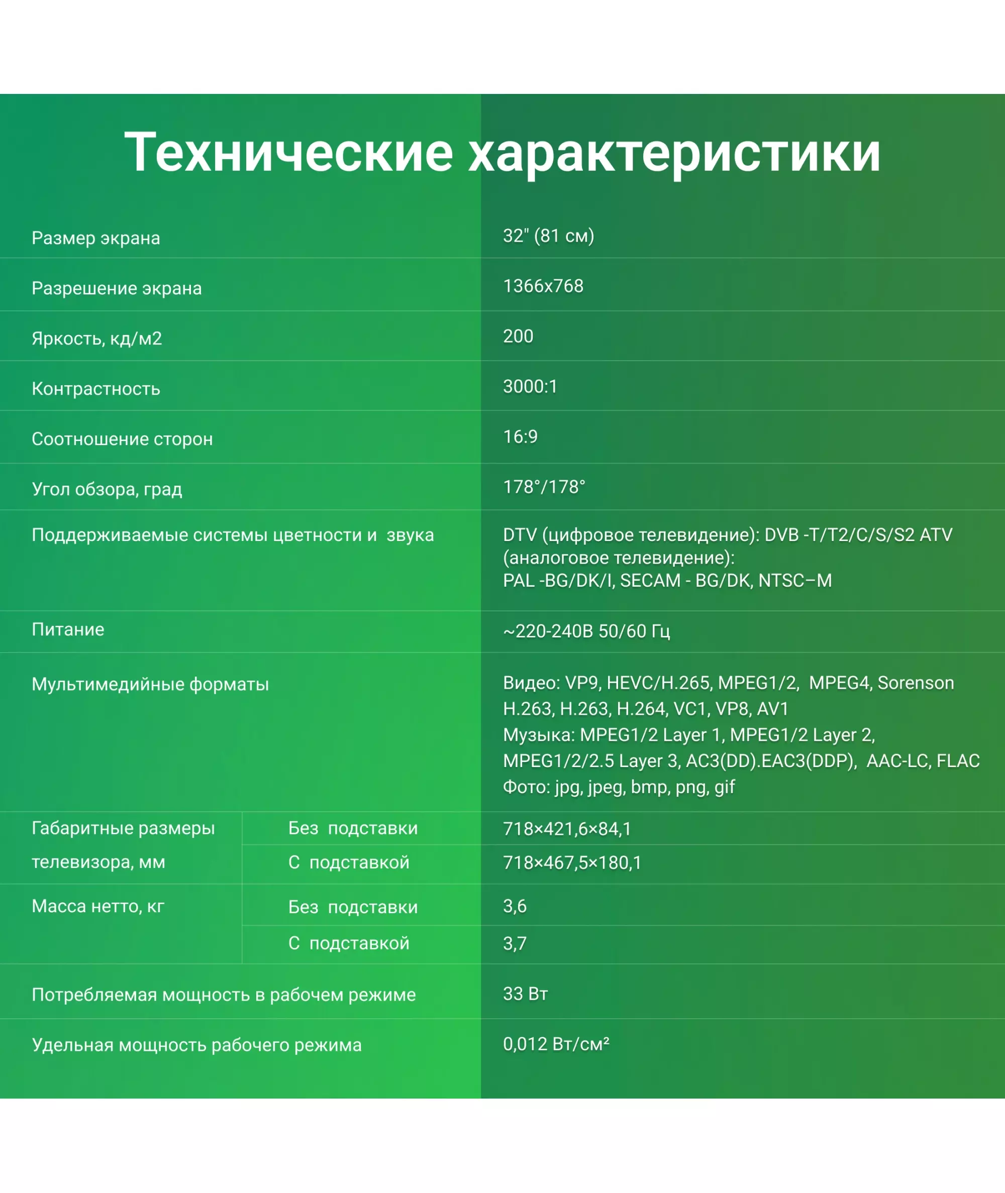 | Диагональ экрана (дюймы) | 32 " |