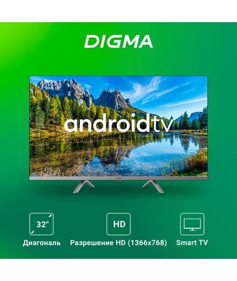 Телевизор LED Digma DM-LED32SBB39 32" Android TV Frameless Metal темно-серебристый/серебристый HD 60Hz DVB-T DVB-T2 DVB-C DVB-S DVB-S2 USB WiFi Smart TV
