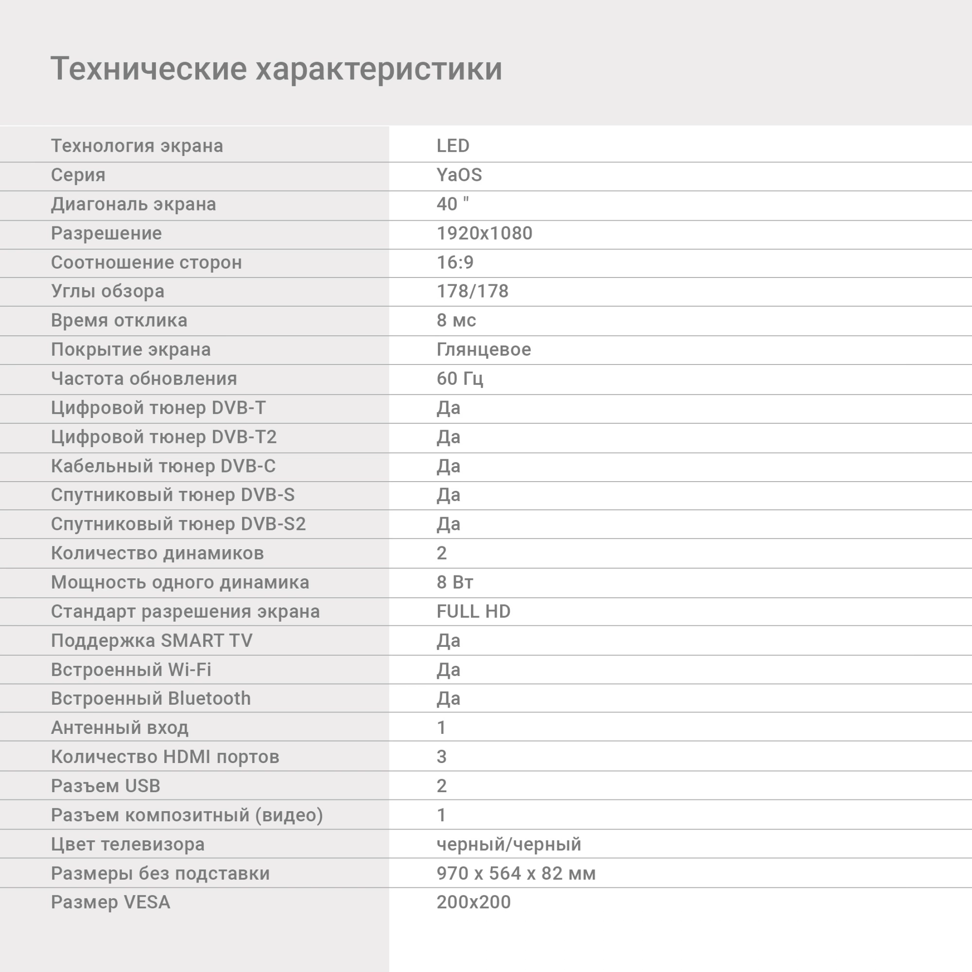 | Диагональ экрана (дюймы) | 40 " |
