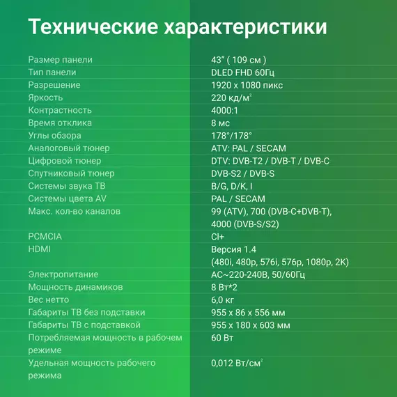 | Размеры без подставки | 954.5x555.9x86.1мм |